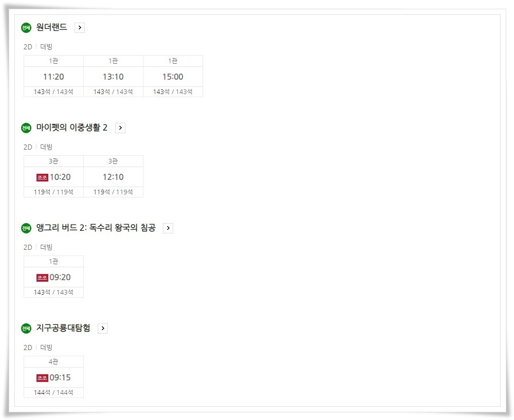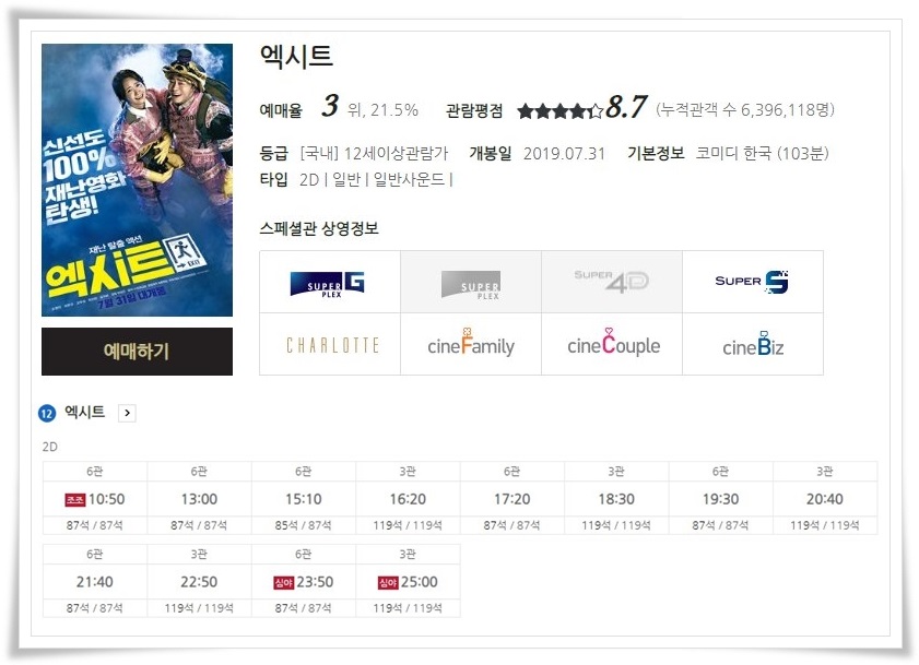 오늘 하루 상영 예정만 총 12번에 이를 정도로 많은 인기를 얻고 있습니다.