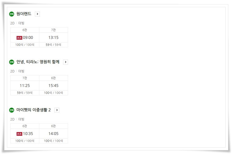 이뿐 아니라 어린이들이 좋아할 만한 영화도 많이 상영 중입니다.