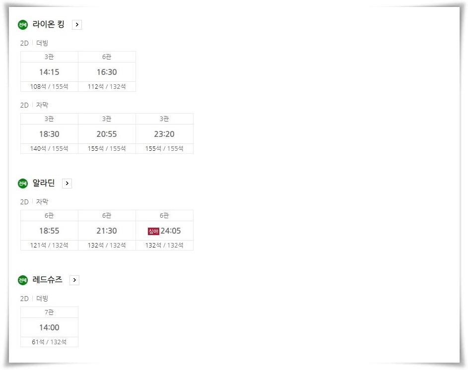 영화 순위에서 1위를 달리고 있는 만큼 오늘 하루 총 16편의 상영이 예정되어 있습니다.