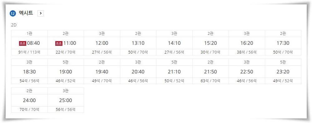 8월 3일(토) 프리미엄 안동 롯데시네마 상영 시간표