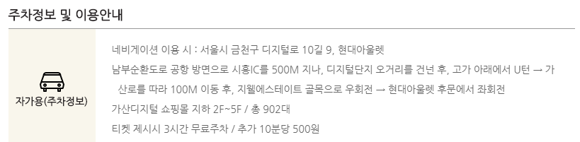 쇼핑몰과 함께 있어서 주차공간이 넓은게 장점이라고 할 수 있습니다. 단 주말은 교통이 혼잡하다고 하는 점 참고하시고 방문하는 게 좋습니다.