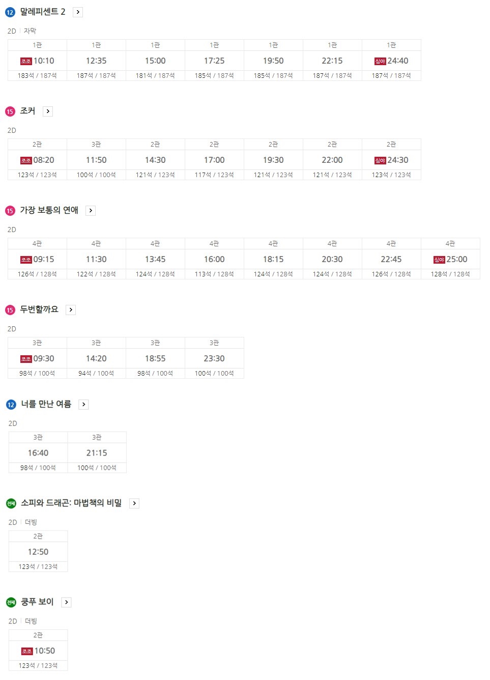 인천터미널 롯데시네마 상영시간표 및 영화예매 순위