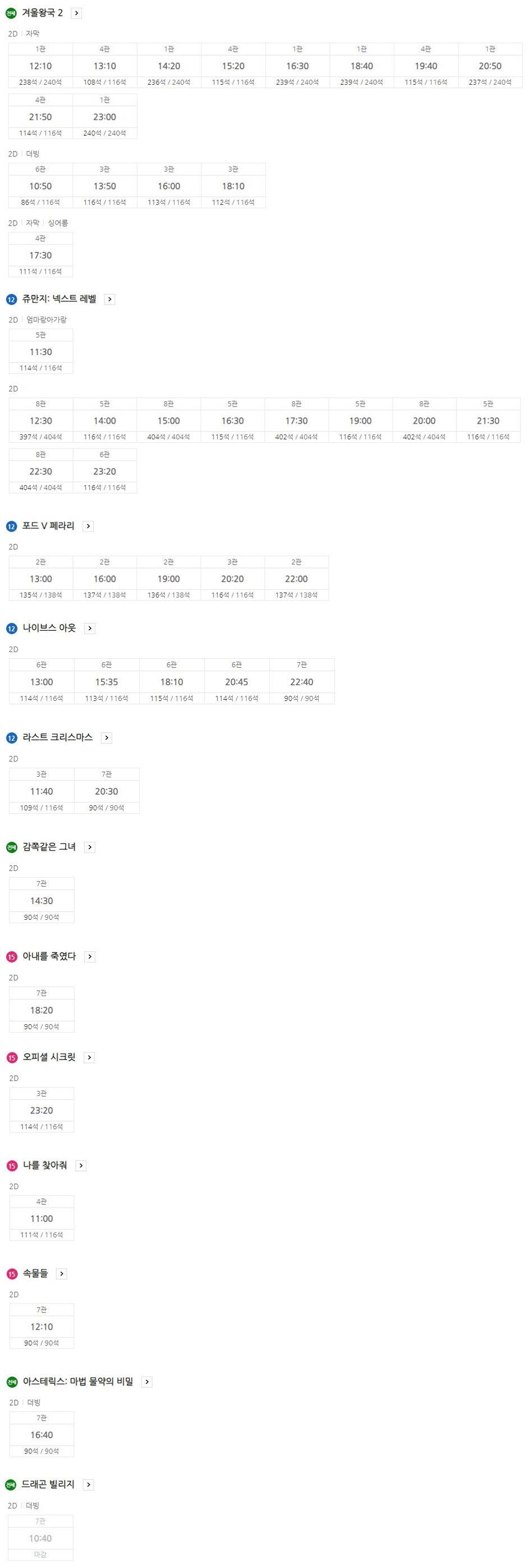 마지막으로 은평 롯데시네마 상영시간표를 소개해보도록 하겠습니다. 작성일 기준의 시간표이기 때문에 다소 다를 수도 있는 점 양해 바랍니다.