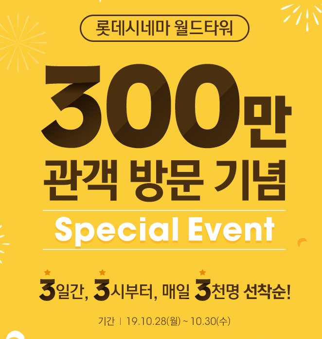 롯데월드타워에 입점한 롯데시네마가 관객 방문 300만 명을 맞이하여 특별한 이벤트를 준비했다고 합니다.