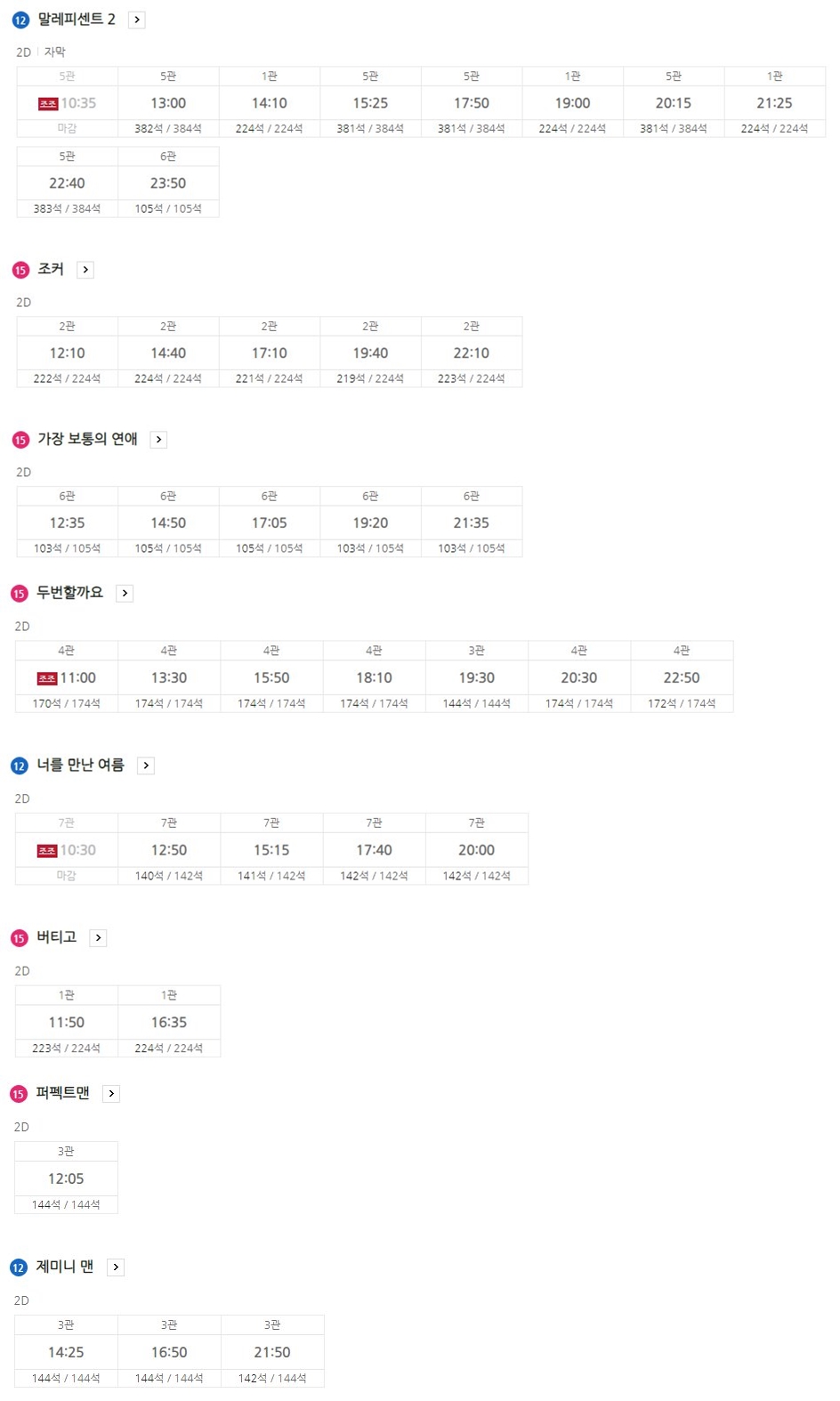 현재 상영작들은 다음과 같습니다.