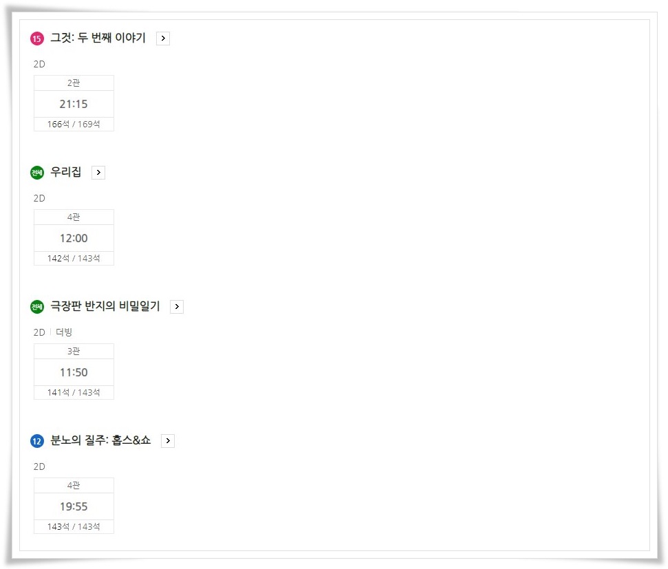 가족애가 무엇인지 사랑이 무엇인지 알 수 있는 힘을 내요 미스터리 오늘 하루 총 11번의 상영이 예정되어 있으니 참고하시기 바랍니다.