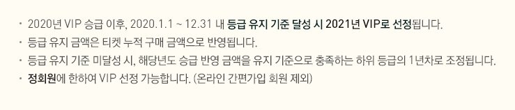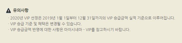 2019년 VIP 등급(실버, 골드, 플래티넘)의 경우 16만 원 이상 누적 시 VVIP 등급으로 승급